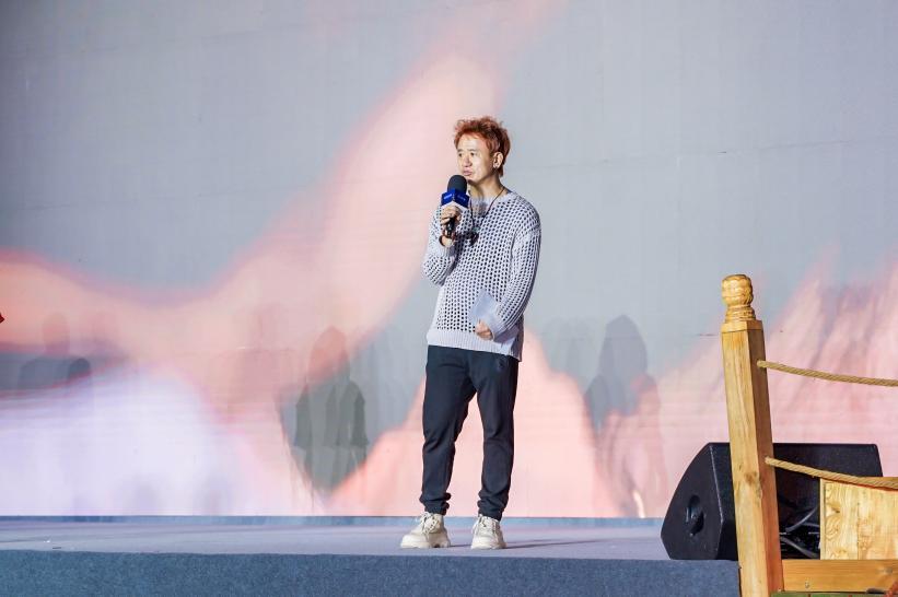 邵旭鹏在“何以中国·五星出东方”网络主题宣传活动现场演讲。人民视频供图