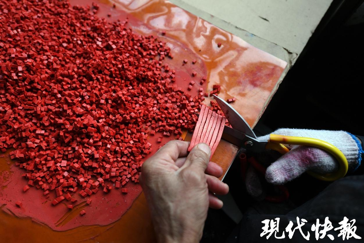 “我是个在颜料里泡大的孩子,大学毕业之后,我就开始跟着父亲从事这一行。”张磊说,传统国画颜料,性子是比较“慢”的。一批颜料的诞生,需要经过选料、研磨、溶胶、沉淀、煎膏、摊膏、剪膏等,工艺复杂而漫长。仅仅晾干这一过程,就需要一两个月。
