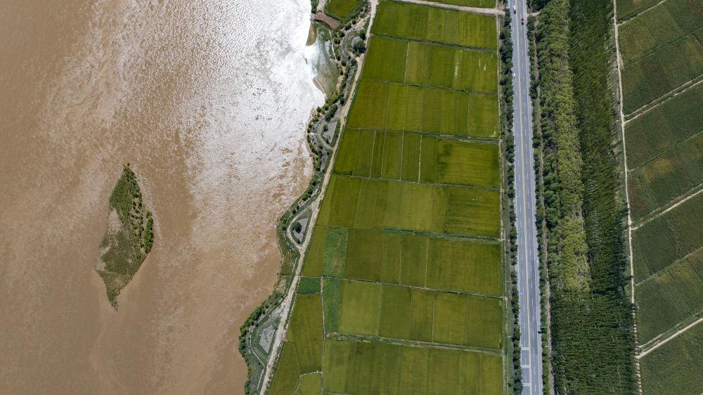 2024年8月26日在宁夏银川市永宁县拍摄的黄河岸段(无人机照片)。近年来,宁夏努力建设黄河流域生态保护和高质量发展先行区,全力打好黄河保护持久战,努力让“塞上江南”越来越秀美。