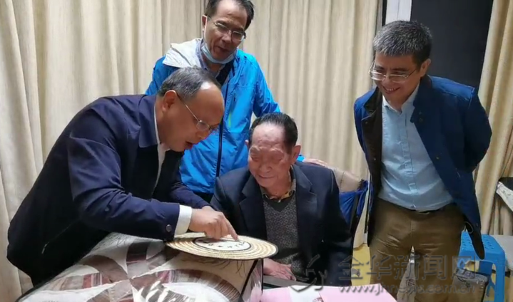 徐利民、蒋乐平为袁隆平先生讲解上山稻作