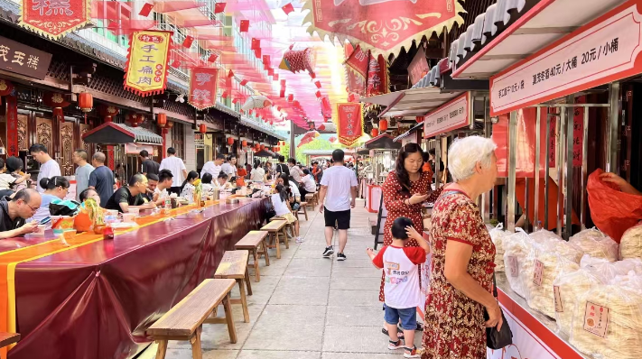 游客在“寻根追味”小吃街品尝地道小吃、采购伴手礼。沙县区融媒体中心供图