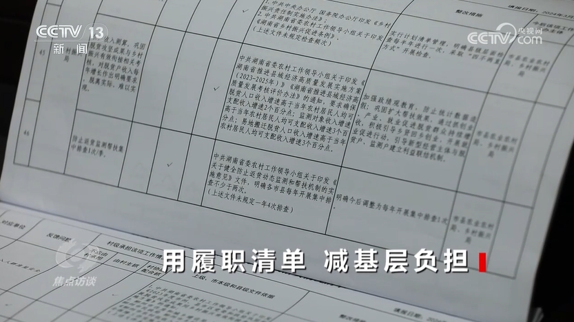 央视网消息(焦点访谈):“上面千条线,底下一根针”,人们经常用这句话来描述乡镇干部的基层工作状况。也有人用“小马拉大车”形象地描述基层干部在实际工作中所面临的满负荷状态。为了减轻基层负担,2024年8月,中共中央办公厅、国务院办公厅印发《整治形式主义为基层减负若干规定》,其中明确提出,要规范明晰基层权责,建立健全职责清单。那么,目前基层权责明晰做得如何呢?