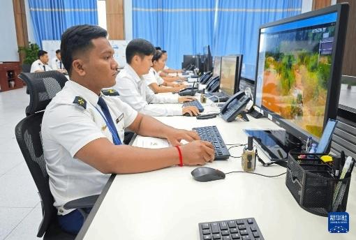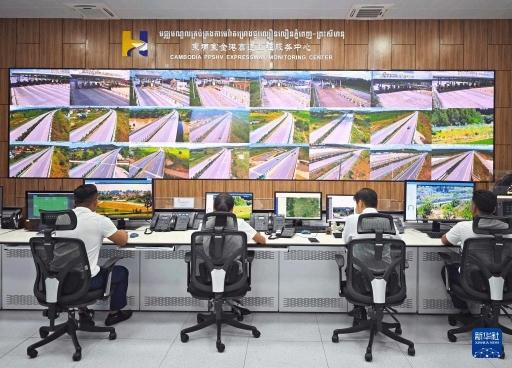 11月1日,工作人员在柬埔寨首都金边的金港高速监控服务中心内忙碌。新华社记者 吴长伟 摄