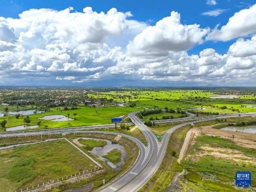 这是9月25日在柬埔寨磅士卑省拍摄的金港高速公路(无人机照片)。新华社发(柬埔寨金港高速公路有限公司供图)