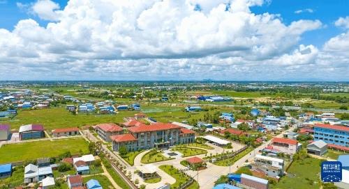 这是9月25日在柬埔寨首都金边拍摄的金港高速公路运营中心(无人机照片)。新华社发(柬埔寨金港高速公路有限公司供图)