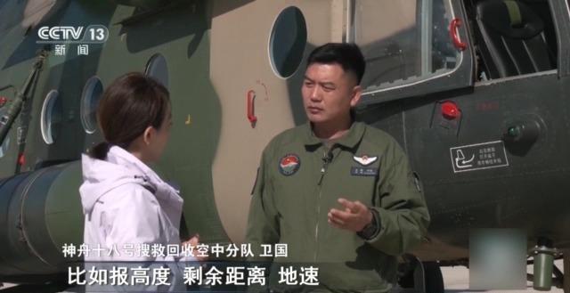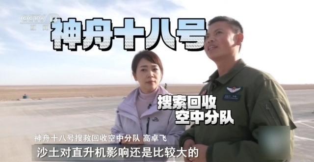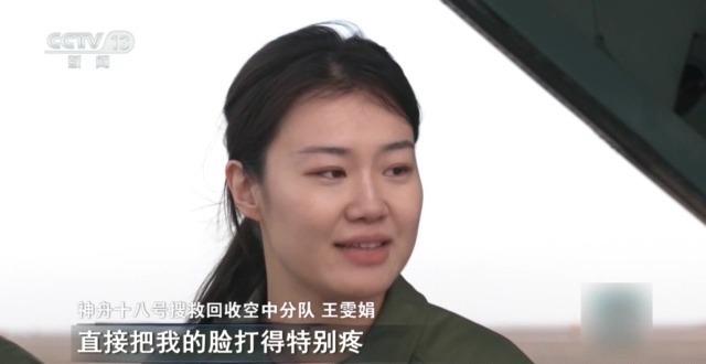 神舟十八号搜救回收空中分队王雯娟:在暗夜飞行是漆黑一片,相当于把你扔到一片漆黑的大海里面,就像一片黑洞一样。一个是心里有点害怕;再一个是没想到大漠的风那么厉害,当时戈壁滩上卷起的沙子,直接把我的脸打得特别疼,瞬间我的鼻孔眼睛里面全是沙子。