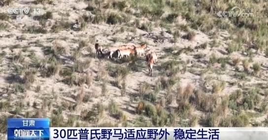随着转运工作的完成,敦煌西湖保护区的普氏野马从126匹增长到166匹。去年9月,敦煌西湖保护区将40匹普氏野马放归到纯野外环境,经过一年的时间,目前已有30匹普氏野马在野外适应并定居。我们继续看报道。