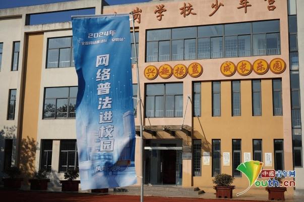 “网络普法进校园”宣传旗。中国青年网记者 田昕禾摄