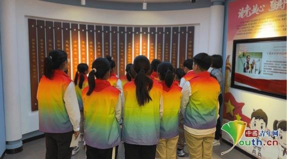 来参观的学生们齐声朗读《少年中国说》。中国青年网记者 田昕禾摄