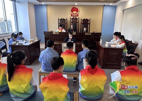 “现在开庭!全体起立!”随着法槌敲响,一场严肃的“法庭庭审”正式开始。合肥市未成年人法治宣传教育基地内,来自合肥市卫岗小学的孩子们正“沉浸式”感受一起校园案件庭审的全过程。