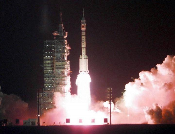 1999年11月20日,中国第一艘载人航天实验飞船神舟一号在酒泉卫星发射中心发射升空。新华社发