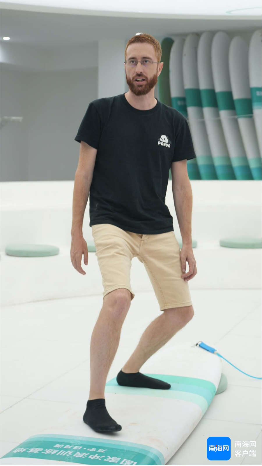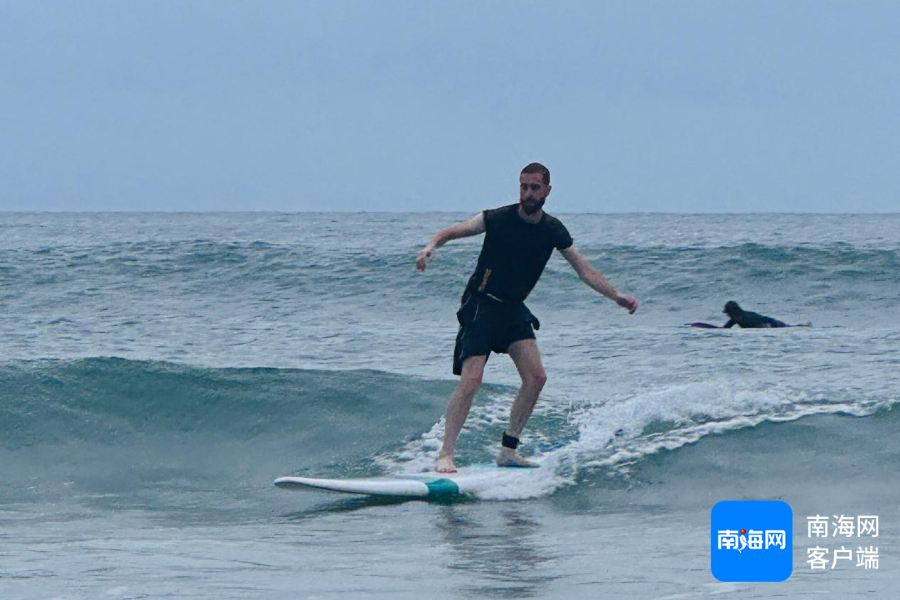 意大利摄影师Fabio体验冲浪。海南国际传播中心供图