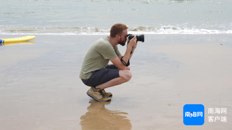 意大利摄影师Fabio在日月湾海滩上拍摄。海南国际传播中心供图