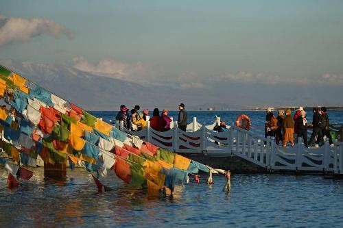 2024年10月18日,游客在青海湖二郎剑景区游玩。新华社记者 张龙 摄