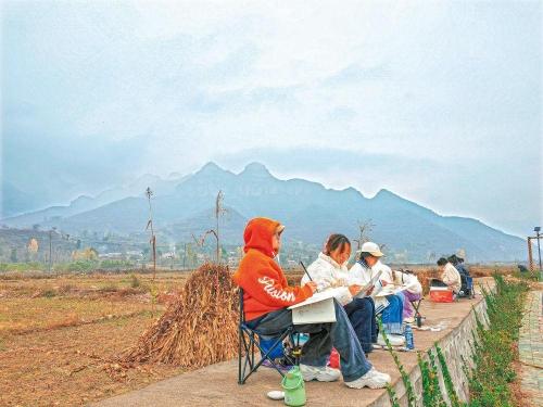 虽然已时近立冬,但来自晋中学院的一百多名师生仍坚持每天外出写生。“这里是太行山中段最雄美的地方,来到这里可以让学生们接受大自然的洗礼,同时感受地方文化,让他们积累创作素材的同时了解农村、热爱农村。”晋中学院国画老师孟冠华说。