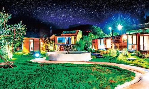 夜幕再次降临,明净的夜空中繁星点点,与山上木屋的灯火交相辉映。静谧的松庙村,又将迎来一个安睡的夜晚……