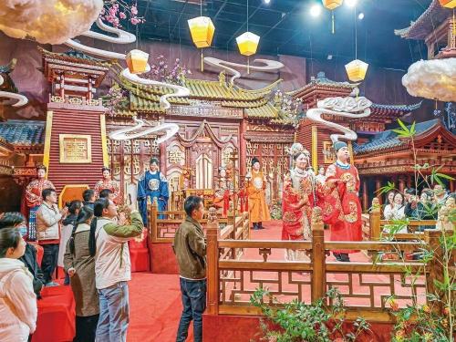 现在村里不仅可以提供周、汉、唐、宋、明等不同礼制的中式传统婚礼服务,景区日常还上演着迎宾礼、出阁礼、正婚礼等表演,让客户下单前就可以提前审视自己婚礼的效果。部分古民居经过修缮装修开设的民宿,还分成了“男方院”“女方院”,方便全套迎亲流程在这里展开。