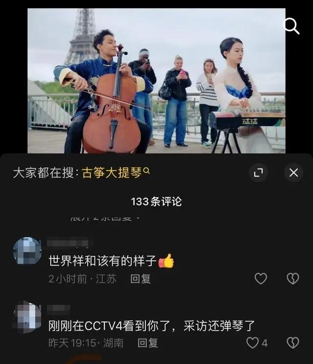 有的网友甚至进入通感状态,从听觉延伸到视觉,深深浸润在文化交流所营造的美好氛围中。“塞纳河畔的这场古筝与大提琴合奏,简直是听觉的盛宴!闭上眼睛,仿佛能看到河畔的美景在音乐中缓缓展开,太震撼了!”