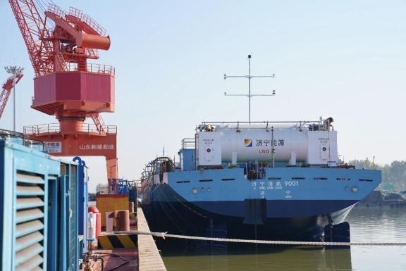 8月22日,邹城新能源船舶制造基地内,济宁能源集团90米LNG动力集装箱运输船及67.6米纯电动力多用途运输船顺利“下水”。这是京杭大运河运载量最大、首次实现批量化生产的新能源智能船舶。