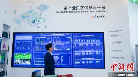 图为冯文滔查看茶产业数字信息云平台。中新社记者 何俊杰 摄