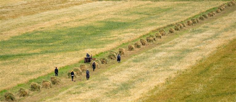 林周县村民在农田里干农活。(林周县融媒体供图)