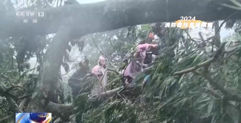 这是超强台风“摩羯”登陆后第10分钟,正处于12级风圈。人几乎无法站立,消防员还要穿越陡坡,到椰林里寻找被困人员。