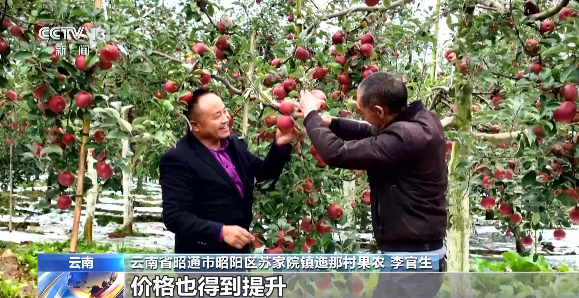 云南省昭通市昭阳区苏家院镇迤那村果农 李官生:品质得到提升以后,价格也得到提升,原来2.5元一斤,现在提高到5元一斤。