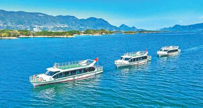 白色游艇飞驰,水花溅跃,划出一道漂亮的弧线……碧绿的湖面上只有水声浪声,却没听到发动机轰鸣声。