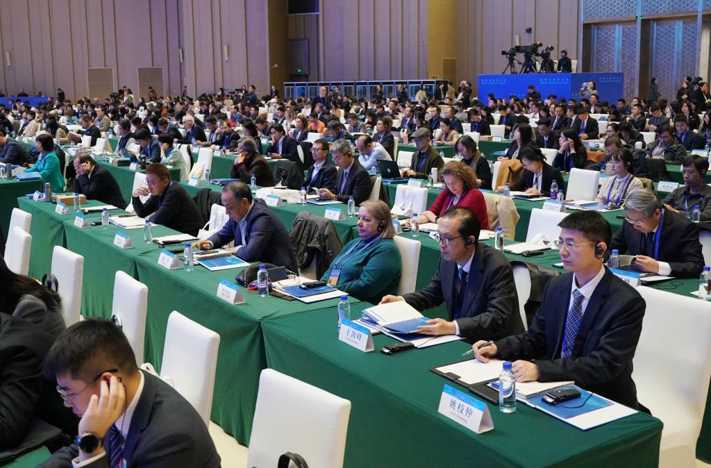 11月7日,中外嘉宾在首届世界古典学大会开幕式现场听会。新华社记者 张晨霖 摄