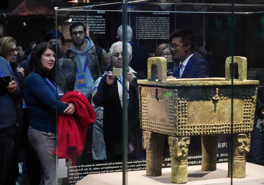11月6日,中外嘉宾来到中国考古博物馆参观“考古与中华文明溯源展”。该展是本届世界古典学大会推出的配套活动之一。新华社记者 张晨霖 摄