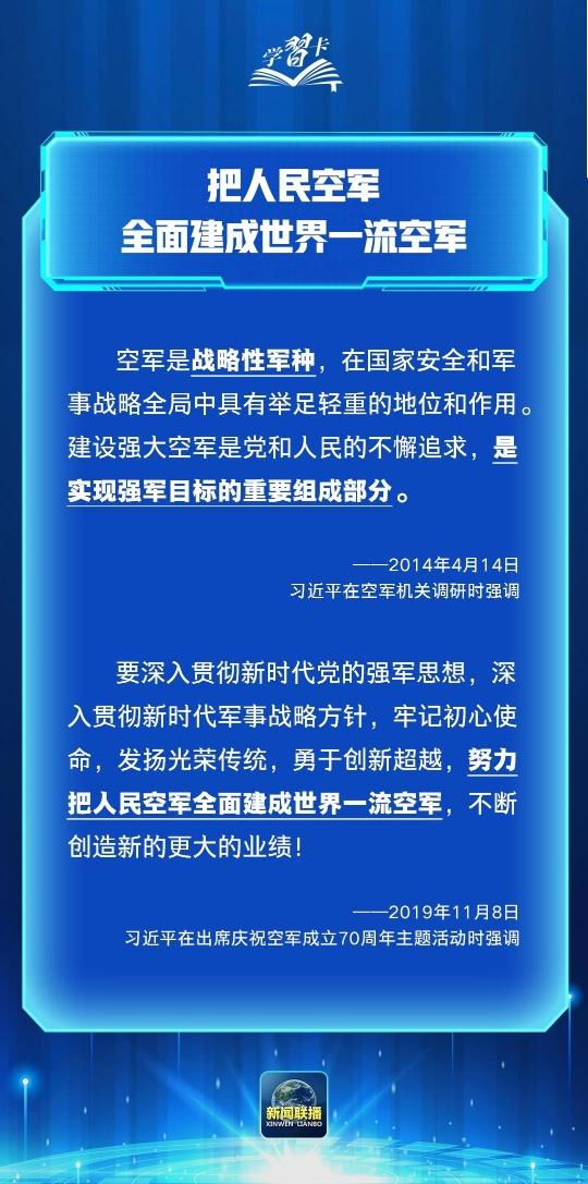 2024年11月11日,是中国人民解放军空军成立75周年纪念日。在党的坚强领导下,一代代空军官兵胸怀凌云壮志,搏击万里长空,推动空军建设取得举世瞩目的成就,为维护国家主权、安全、发展利益建立了不朽功勋。如何把人民空军全面建成世界一流空军?一起学习↓