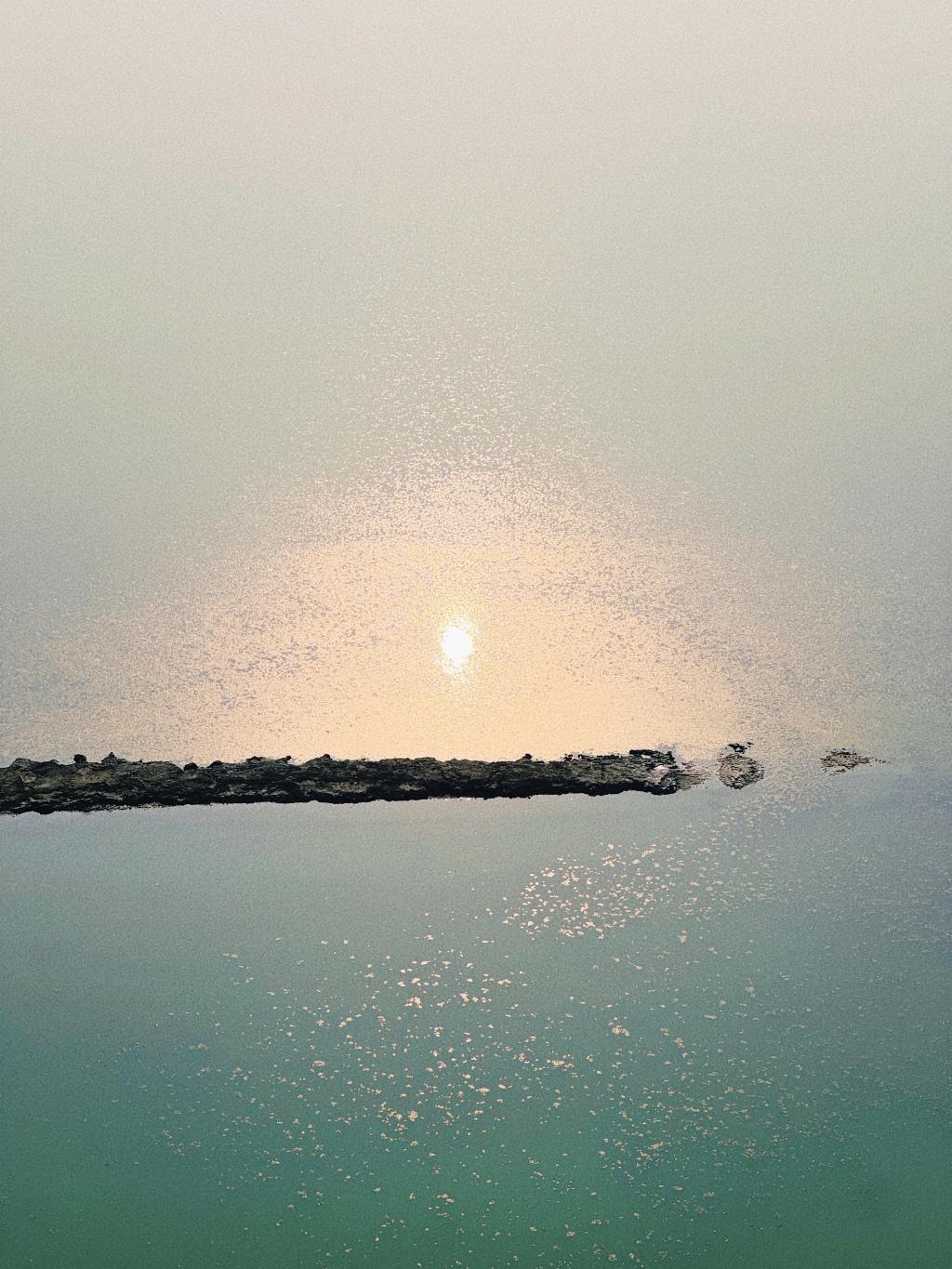 金光泛起涟漪,落日之下的盐湖湖面犹如一抹橙色的浪漫。澎湃新闻记者 金向玉 摄