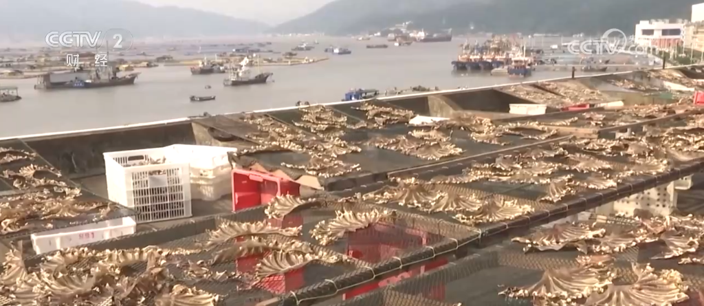 央视网消息:这段时间,福建福鼎的海洋牧场迎来丰收,一部分渔获被送往市场,还有一部分经过晾晒风干成为海鲜干货。