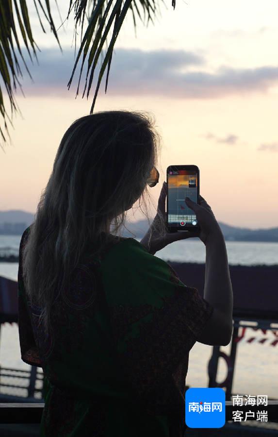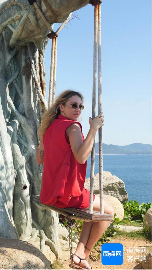 意大利美女博主Yasmin拍照打卡分界洲岛。海南国际传播中心供图