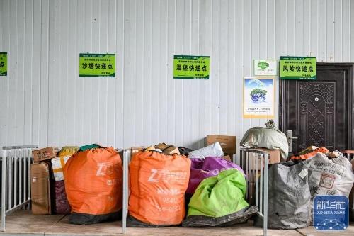 11月10日,隆德县联财镇客货邮商旅综合便民服务站工作人员在整理快递。