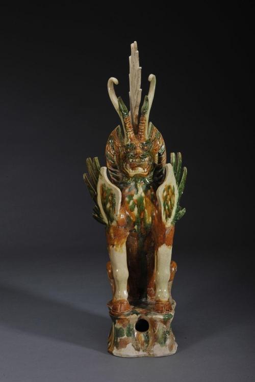 2019年出土于河南省洛阳市洛龙区潘寨村的唐代三彩镇墓兽。(洛阳市考古研究院供图)