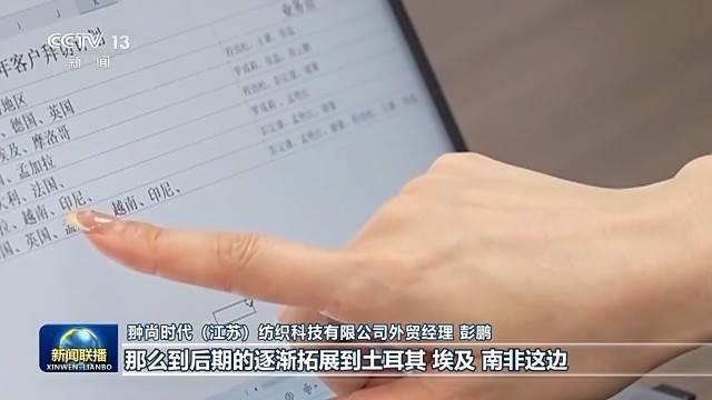 翀尚时代(江苏)纺织科技有限公司外贸经理 彭鹏:最早的我们可能就是以欧洲地区的国家为主,那么到后期逐渐拓展到土耳其、埃及、南非这边。