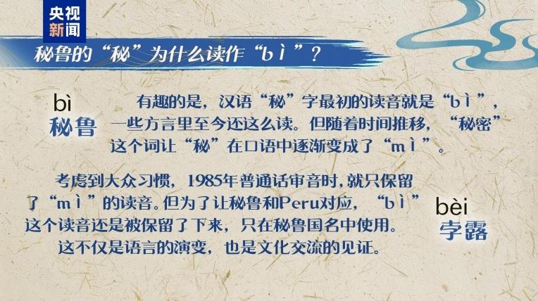 秘鲁的“秘”为啥读“bì”不读“mì”?