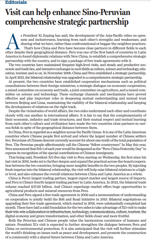 原文标题:Visit can help enhance Sino-Peruvian comprehensive strategic partnership
