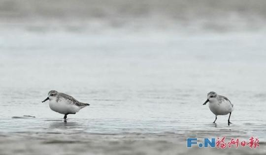 勺嘴鹬在闽江河口湿地觅食。闽江河口湿地管委会供图