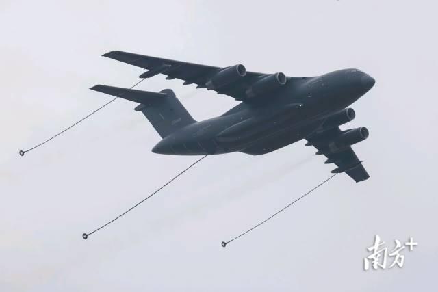 运油-20则是基于运-20平台研发的大型空中加油机,支撑远程打击能力,是中国空军远程作战能力的重要保障。其在本届航展上进行飞行展示,表演了起飞大仰角跃升转弯、反向俯冲通场等空中机动动作。