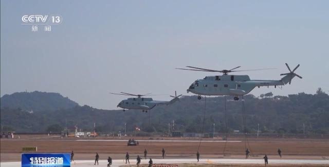总台央视记者 何椿:在海军陆战队在此次航展的一个起飞区,航展期间队员们就是从这里搭载直-20J舰载直升机和直-8C运输直升机前往展区进行空中展示。