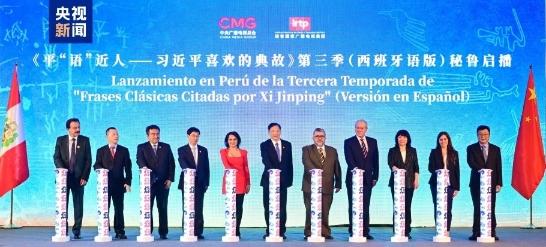 在中国国家主席习近平赴利马出席亚太经合组织第三十一次领导人非正式会议并对秘鲁进行国事访问之际,当地时间11月15日,由中国中央广播电视总台制作的《平“语”近人——习近平喜欢的典故》第三季(西班牙语版)启播仪式在利马举行。秘鲁总统博鲁阿尔特通过视频致辞对节目在秘鲁播出表示祝贺。秘鲁政治、经济、文化、媒体、学术等各界嘉宾近两百人出席活动。