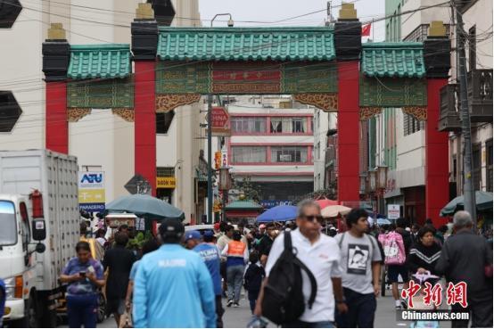 当地时间11月12日,秘鲁首都利马,唐人街“中华坊”牌楼。中新社记者 盛佳鹏 摄