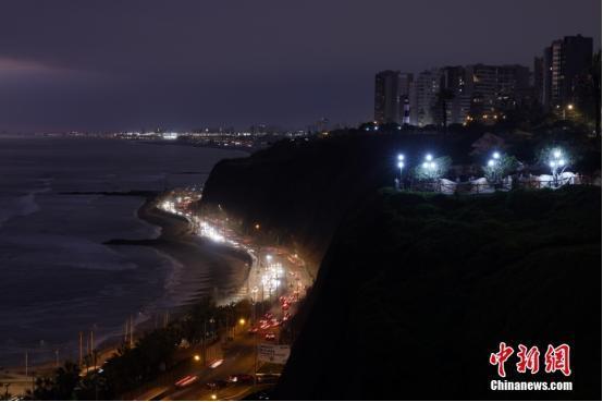 当地时间11月12日,秘鲁首都利马的海边夜景。中新社记者 盛佳鹏 摄