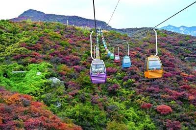 游客在北京房山区坡峰岭景区乘坐缆车观光。新华社发