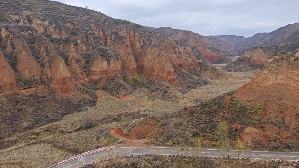 在位于隰县寨子乡的黄土国家地质公园,黄土呈现出深浅不同的红色。 澎湃新闻记者 王珏玮 图