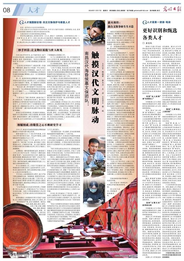 44岁的管理在2019年博士后出站后就加入了江西省文物考古研究院海昏侯考古团队,担任了4年的文保组负责人后调入江西省博物馆。“要培养出一名成熟的文物修复师,至少要以10年为期,同时还必须具备长期坚持的信念。”如今,作为江西省博物馆馆长,管理也在积极开展文物保护与修复人才培养工作。