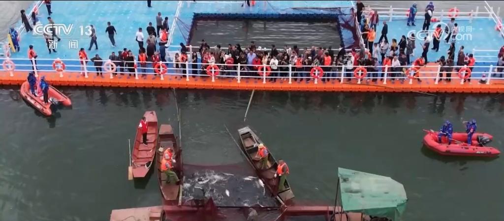 11月16日,江西宜春袁州区飞剑潭水库迎来生态鱼的冬季集中捕捞。随着渔网逐渐收拢,鱼跃欢腾,当地借此举办各类活动,让游客也体验鱼儿丰收的喜悦。