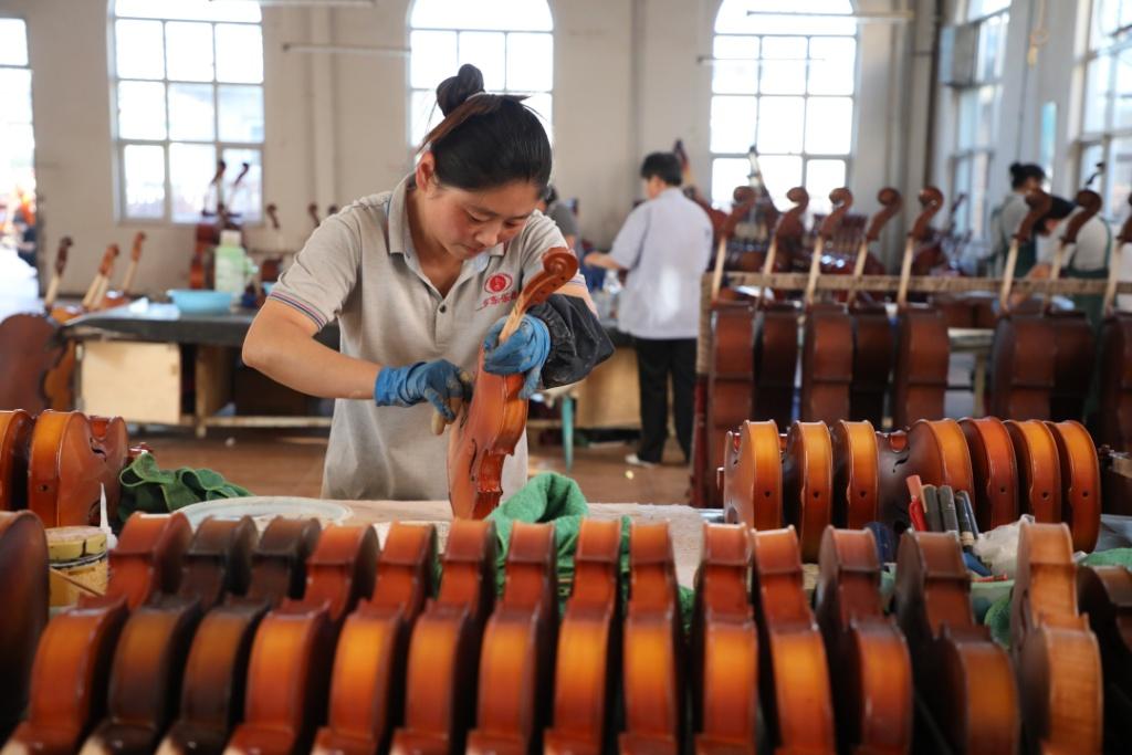 随着订单逐渐扩大,东高村的业务从生产配件转向整琴制作,户户冒烟的“家庭作坊”,也向规模化、标准化的企业集中。到2008年,全镇提琴年产量达到30万把,远销美国、欧洲、东南亚等地,产值高达7000多万元。